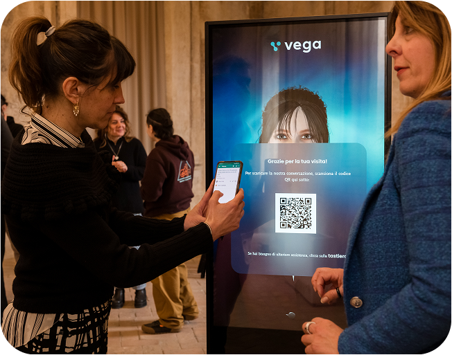 Con VEGA, offri un assistente digitale con volto umano, attivo su totem interattivo.